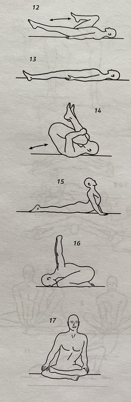 Данная крийя достаточно длинная, но она дает мягкую нагрузку, без сложных поз, что крайне важно во время утренней Садханы. Она также прекрасно прорабатывает весь позвоночник и отлично разогревает тело, подготавливая его к медитации.