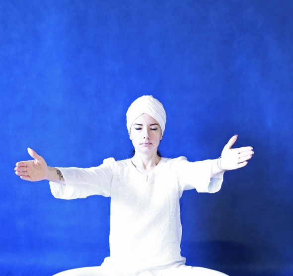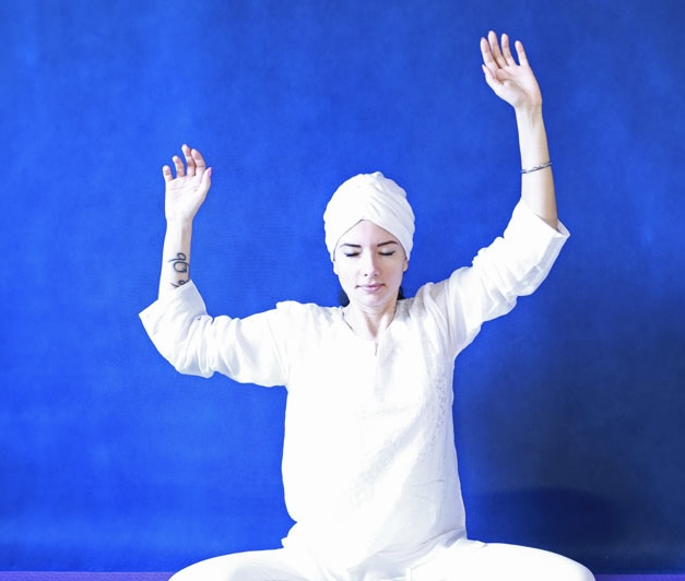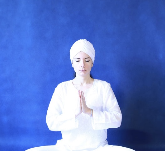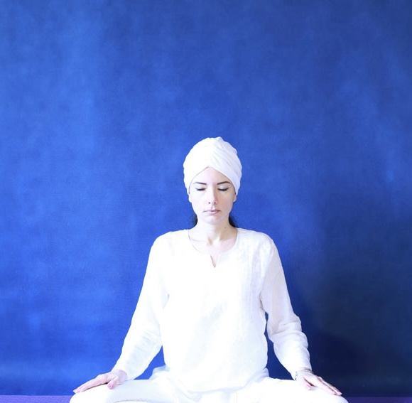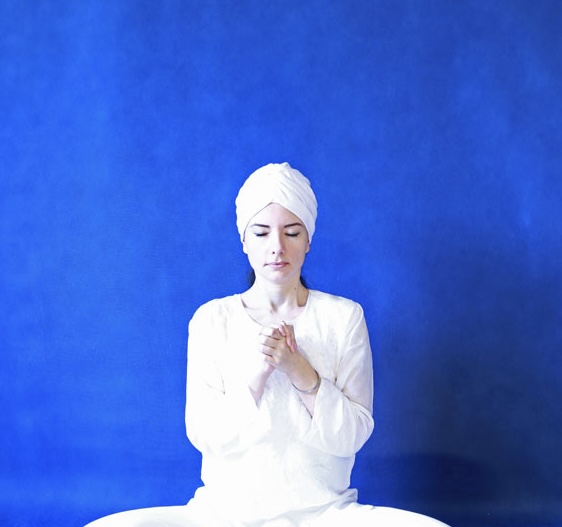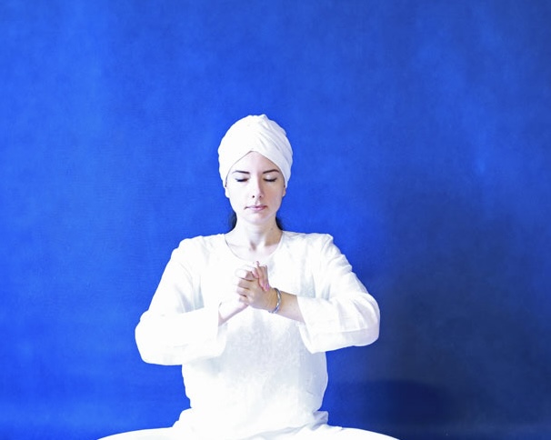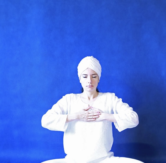 7. Сидя в Простой позе, положите кисти на Сердечный центр - правая сверху левой, ладони развернуты к телу. Кисти параллельны полу. Глаза закрыты. Медитируйте под звуки гонга в течение 8,5 минут. Погрузитесь в состояние дрёмы и гипнотического сна.