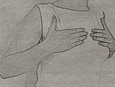 МУДРА: Поместите сбе кисти на грудную клетку, ладони лежат на верхней части туловища на уровне груди. Кончики пальцев направлены друг к другу.