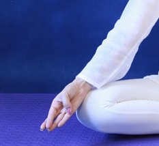 ПОЗА и МУДРА: сядьте в Простую позу со скрещёнными ногами. На обеих руках перекрестите средние пальцы и указательные (средние сверху), а кончики больших положите на подушечки под мизинцами.